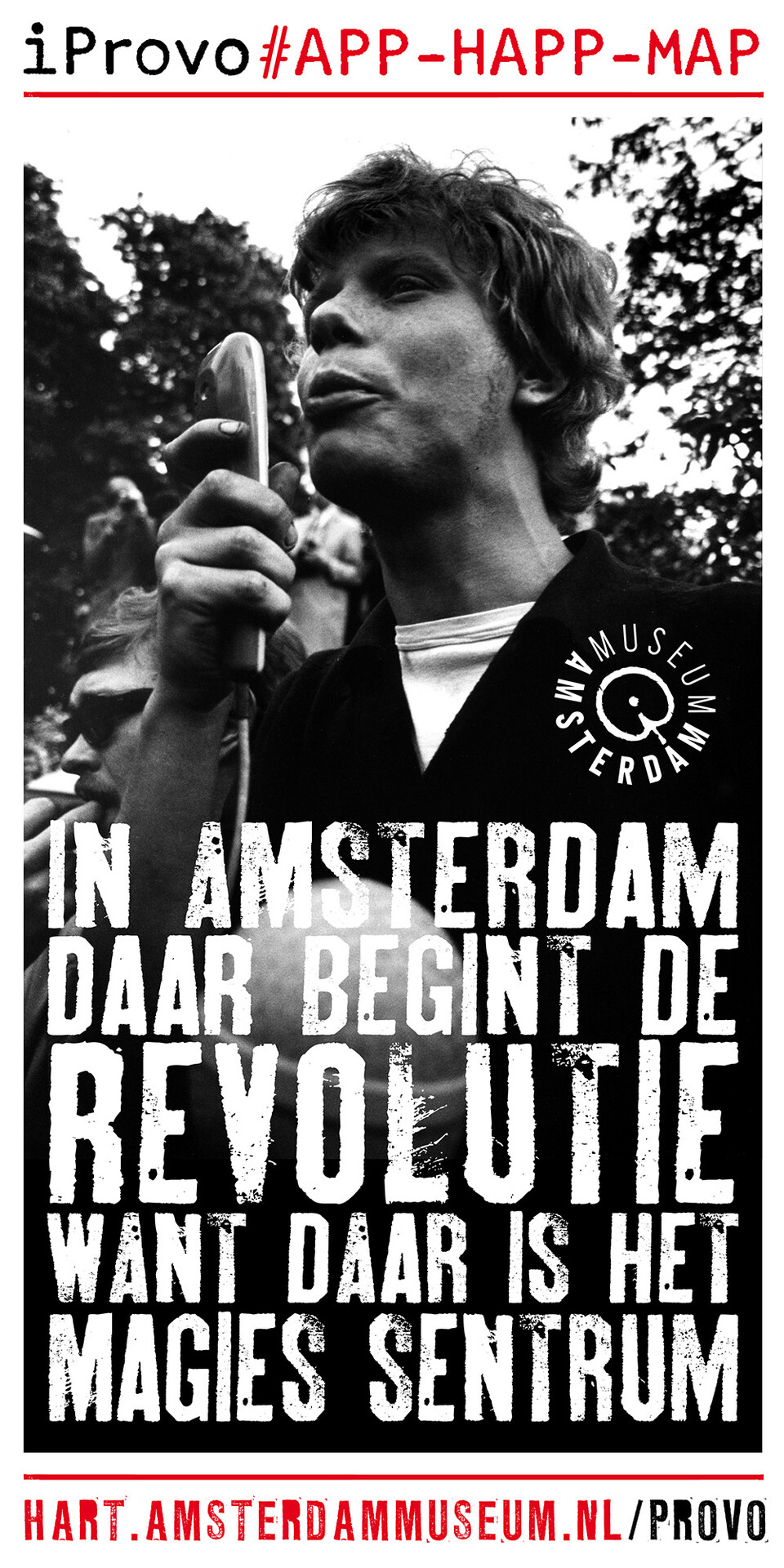 Celebrating the 50th anniversary of Provo the Amsterdam Museum made a bike tour through Amsterdam with 30 essential spots to learn more about the Provo movement. These posters were the tangible pieces and marks of the tour and with the QR code on the poster you were able to receive more information via the iProvo app.