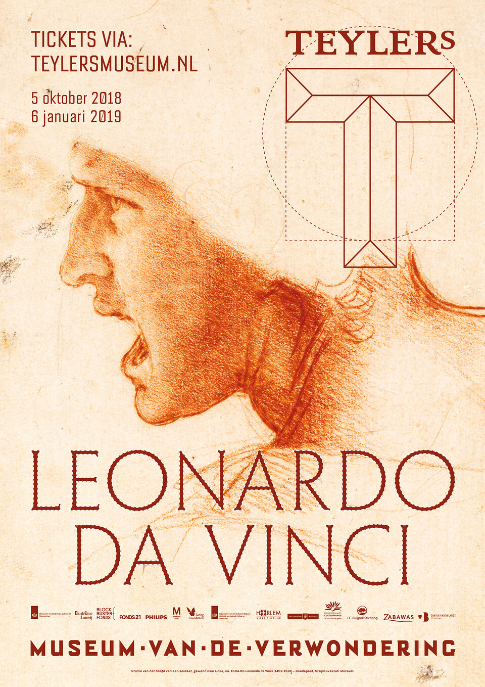 The Teylers Museum exhibits a collection of drawings made by Leonardo da Vinci. Looking through the eyes of Da Vinci you are able to see the first true expressions of real people in Art. We chose two images for the campaign: the drawing of a young soldier and 'the Mona Lisa of drawings', a drawing of a young woman. The design follows the corporate identity of Teylers and is the first big campaign to promote it. Where Leonardo was a true follower of the golden ratio, this campaign and its content truly fits the inspiration of the Teylers identity.