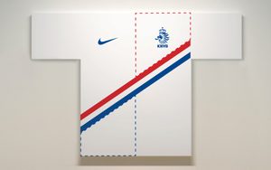 Early Monday morning live in front of news media at the Rijksmuseum Amsterdam I was presenting the National Team jersey 2013. I wrote a script on the heritage of the Dutch flag in connection to the design: the first National jersey with a sash in flag colors constructed to somewhat early modernist blocks of Van Doesburg. But it all started with water, somewhat the foundation of the Dutch culture, replacing it with polders and maintaining them collectively, creating new land; Holland. Mr. van Gaal was very pleased.