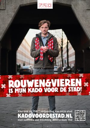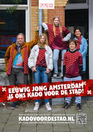 In 2025 the City of Amsterdam celebrates its 750th birthday. All citizens can be part of this celebration especially by producing a 'gift to the city'. Locals are able to request a grand to give back to their neighborhood. We've created a living campaign by portraying groups of people who received the grand and explaining you and me you can do the same. We've made these people the 'Kado's van de stad' (gift to the city) by dressing them in our Amsterdam 750 gift paper.